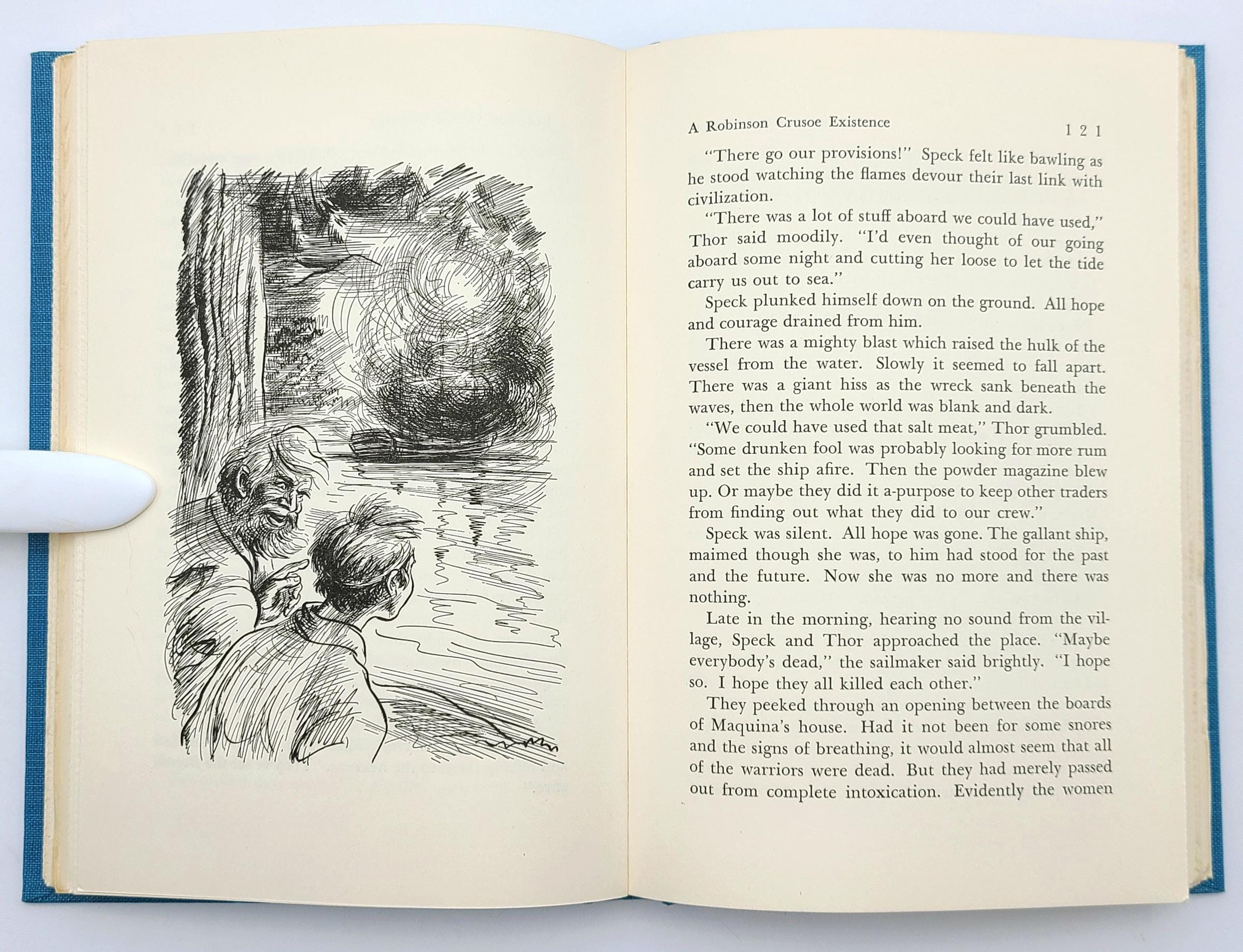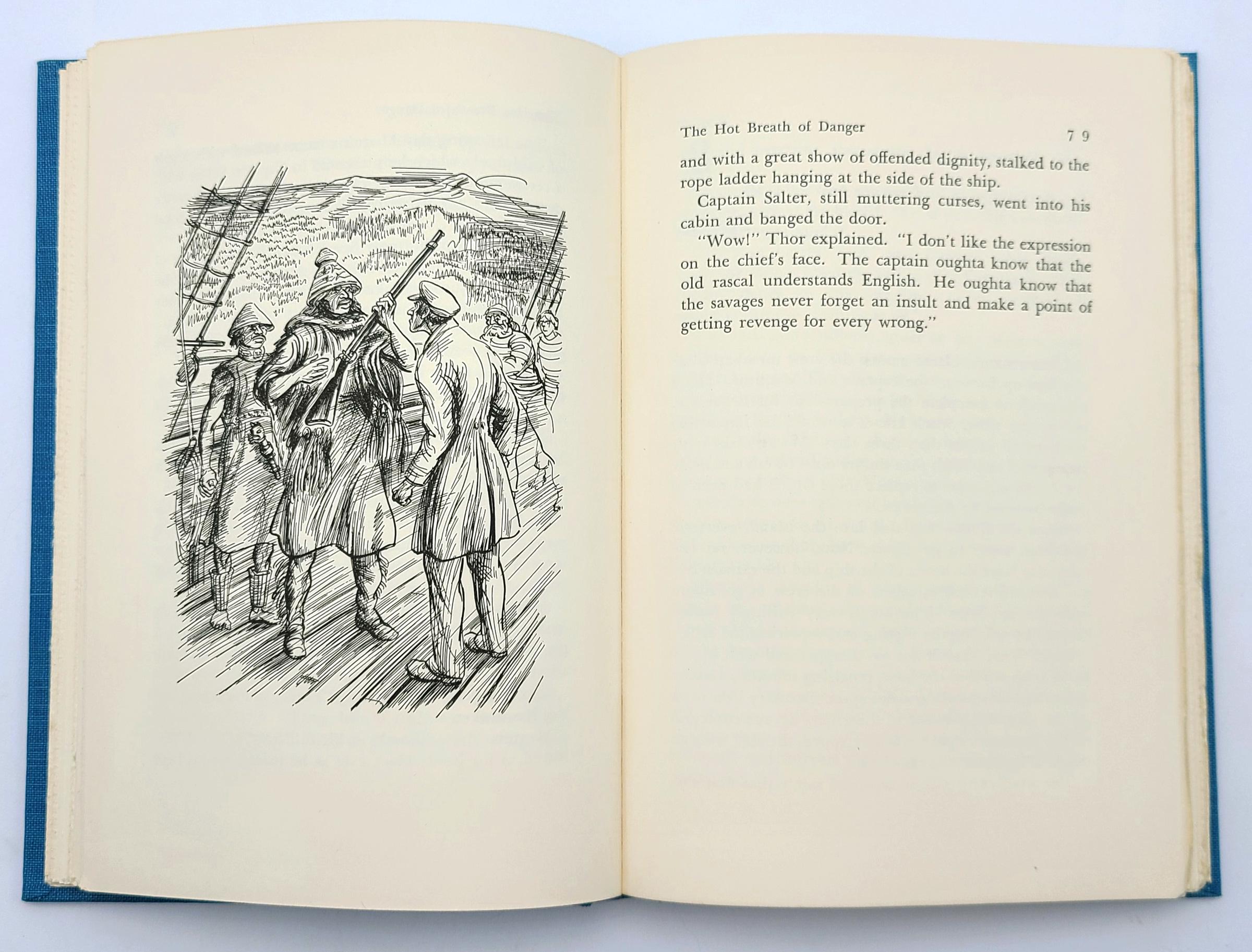Description: Blue cloth boards with yellow lettering on spine and a pictorial of a Nootka mask stamped in bottom corner of top cover. Clean and unmarked. Dust jacket shows light edge and corner wear; not price clipped ($2.75); portrait of author on rear flap; in an archival mylar sleeve. 13 full- page illustrations. 211 pages.