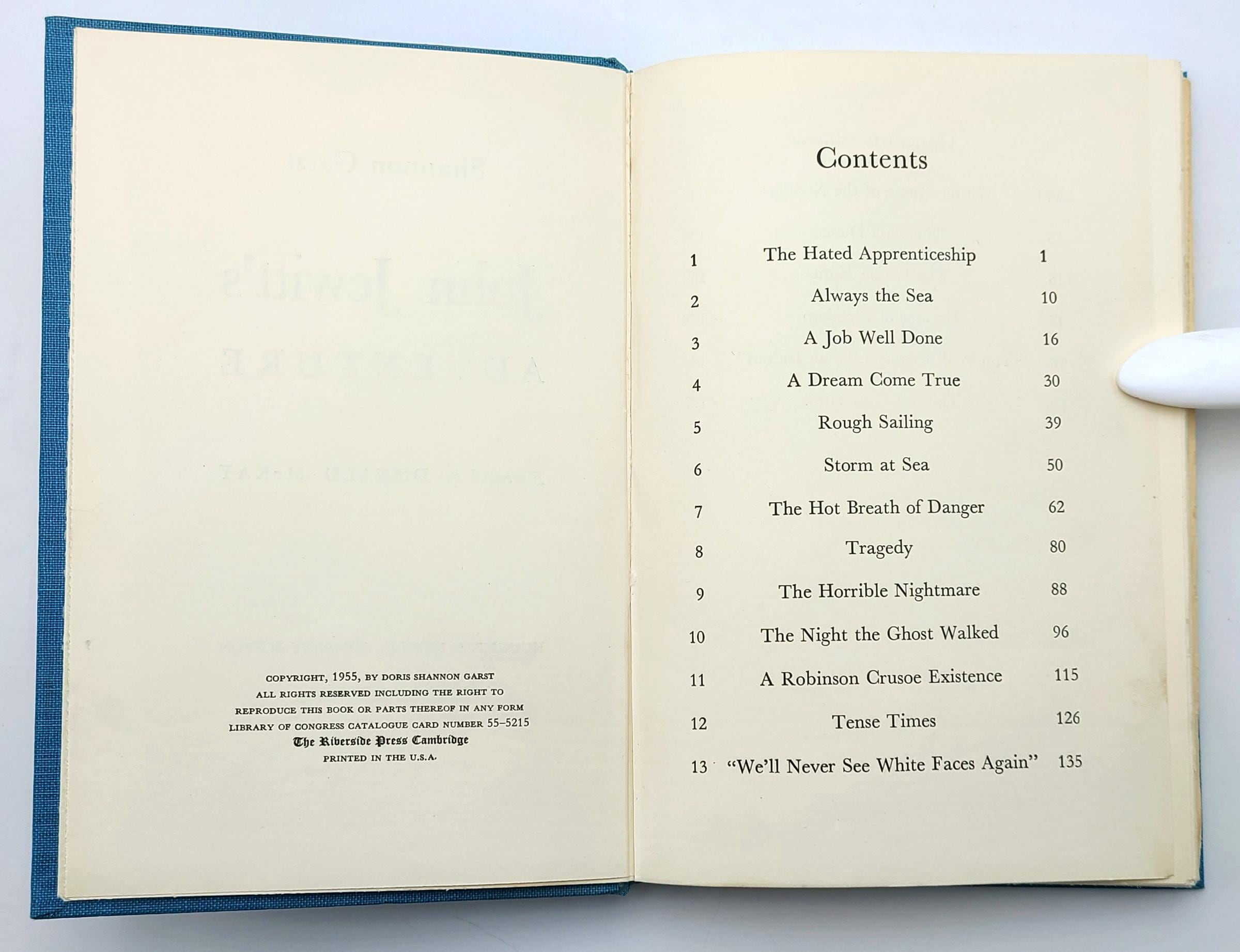 From the front flap: ''For her latest book, Shannon Garst has taken one of the little-known characters of history and made a thrilling story of his personal adventures. The book contains a vivid and colorful picture of life on board a trading vessel in the early nineteenth century, and a dramatic account of John's capture by the Indians [and more than two years of captivity]. The life and ceremonial customs of the Indians of the Pacific Northwest are described with an accuracy and detail that characterize all of the author's writings.''