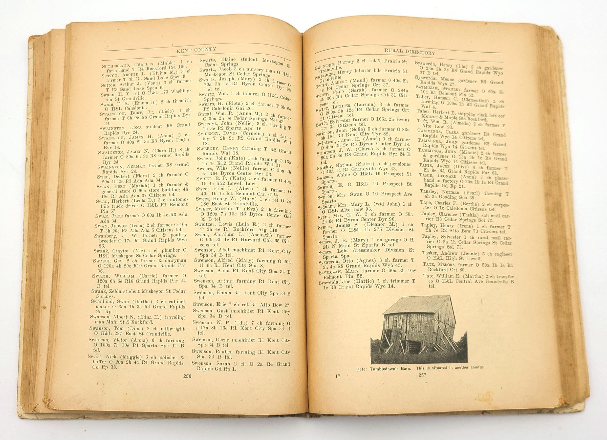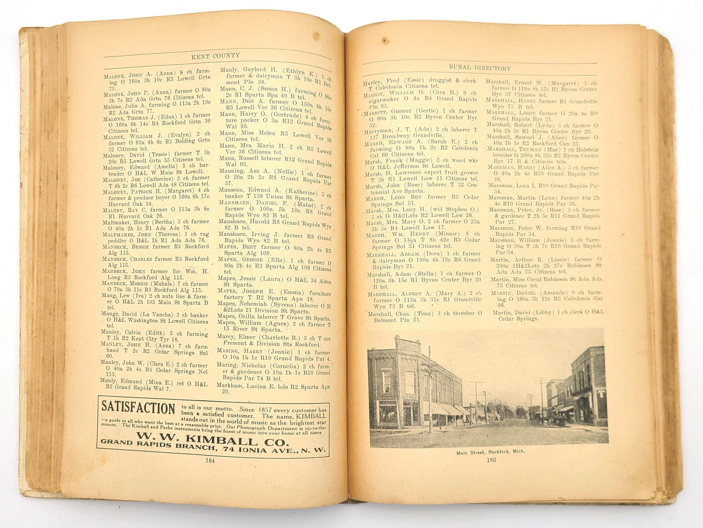 There are about a couple dozen small black-and-white photos: some are humorous, some show scenes on farms, and there also somewhat grainy photos that show the Main streets of Lowell, Caledonia, Rockford, Cedar Springs, and Sparta's Division Street).