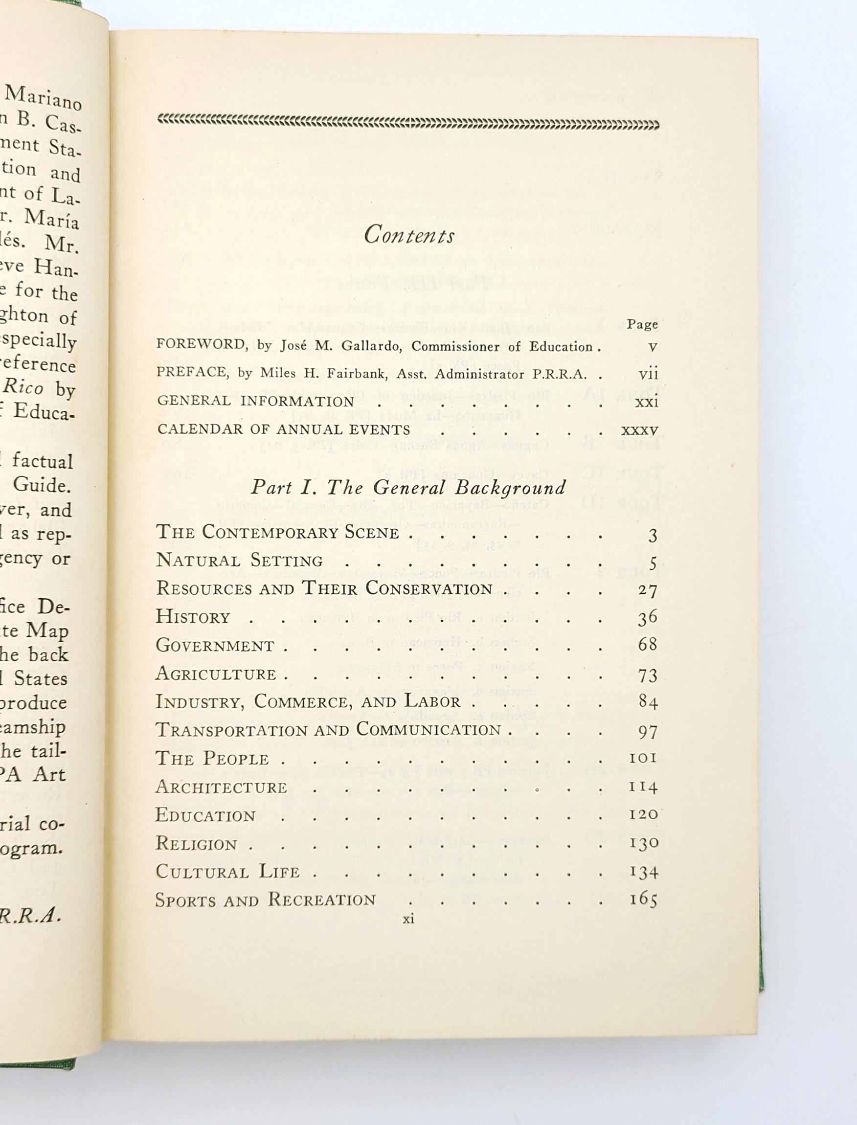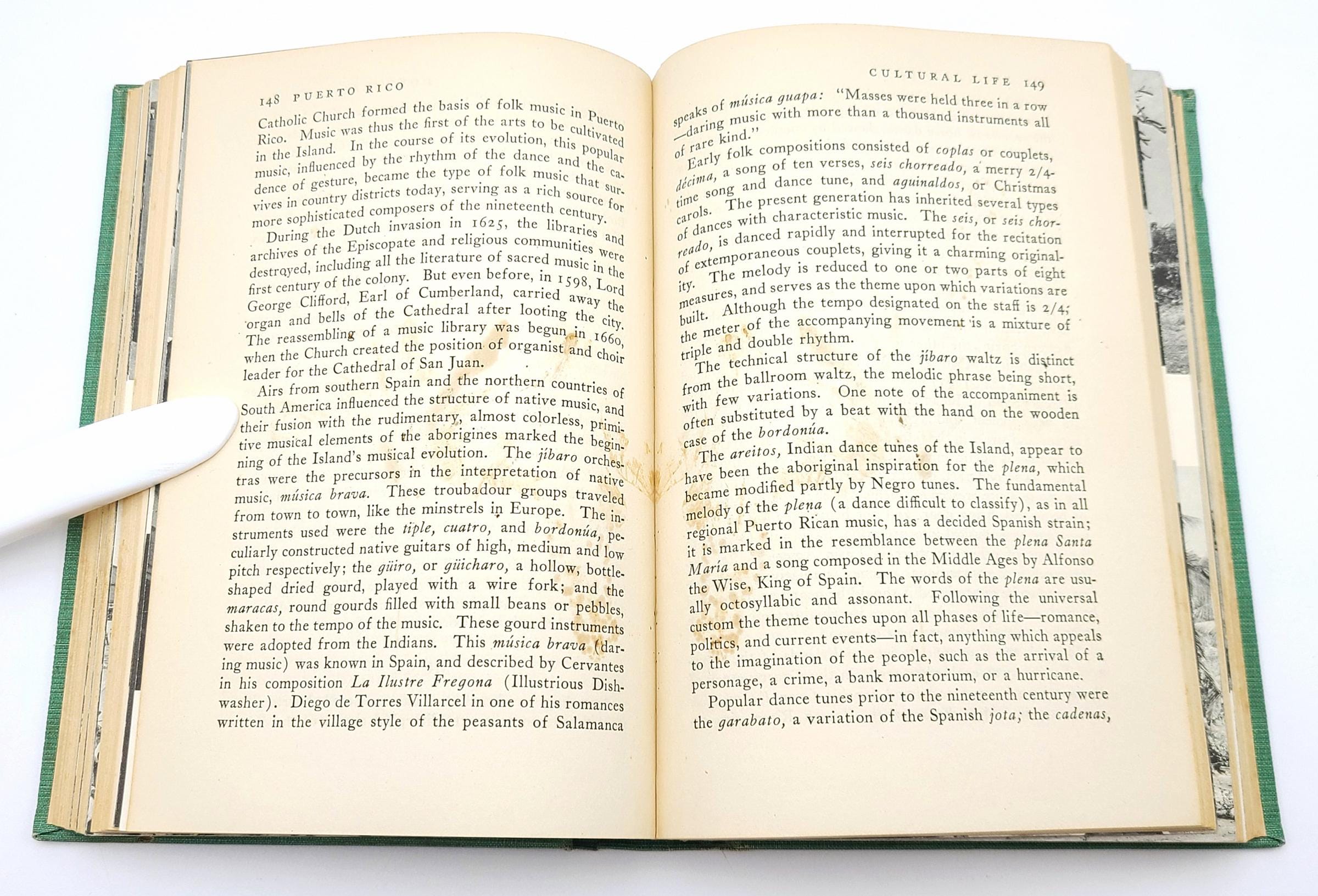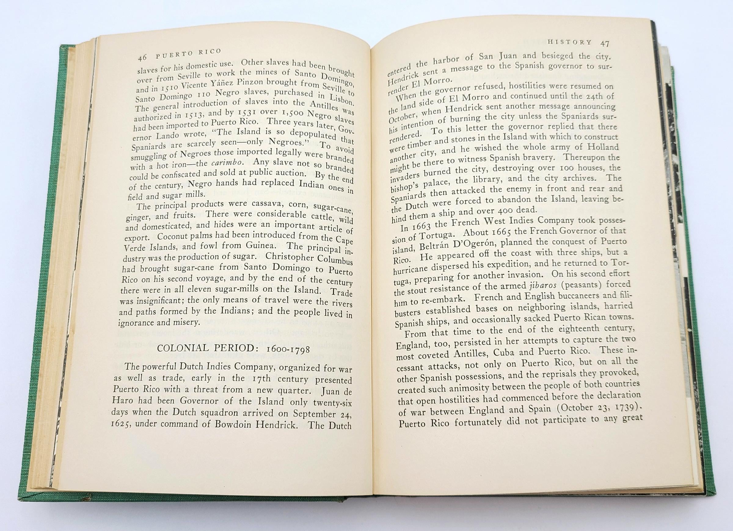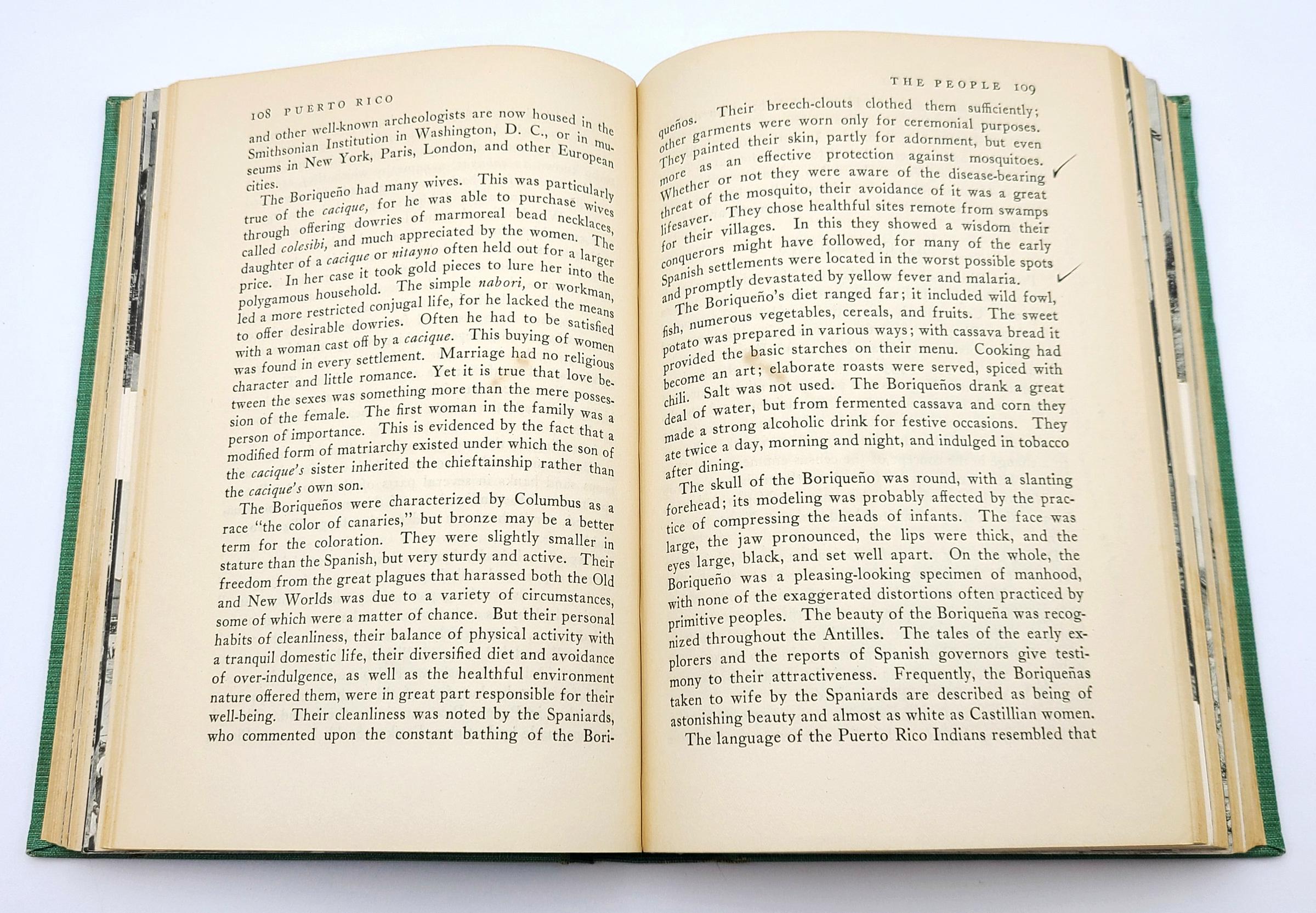 A first edition of the WPA guide for Puerto Rico, published as part of the with an interesting provenance. The book was purchased in September 1944 in San Juan by the U.S. Naval Reserve surgeon and Senior Medical Officer, Lennel Irwood Wright (1902-1961), who had been stationed at the Roosevelt Roads Naval Station at Ceiba between February and August of 1944. His marginalia, which appears on several of the photographic pages, and on about a dozen other pages, provide his personal insights, observations, and opinions about the island and its condition at that time (as well as his low opinion of the native population).