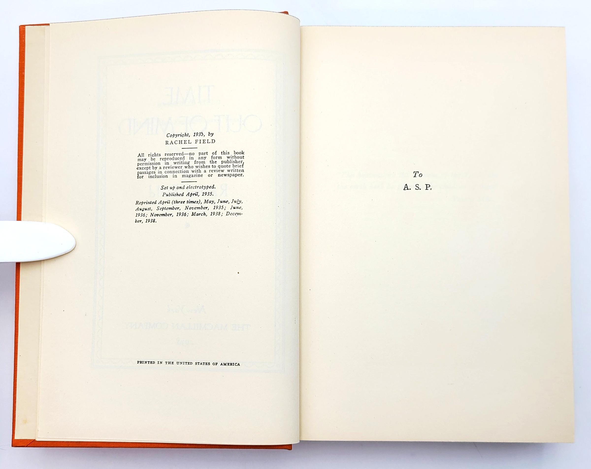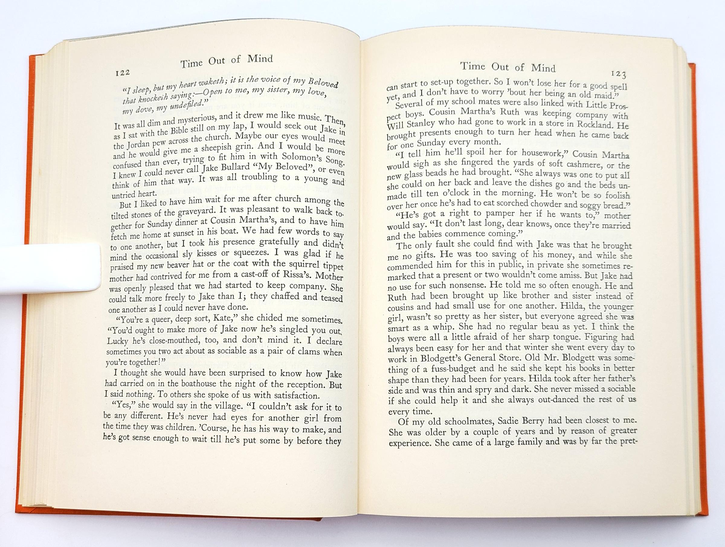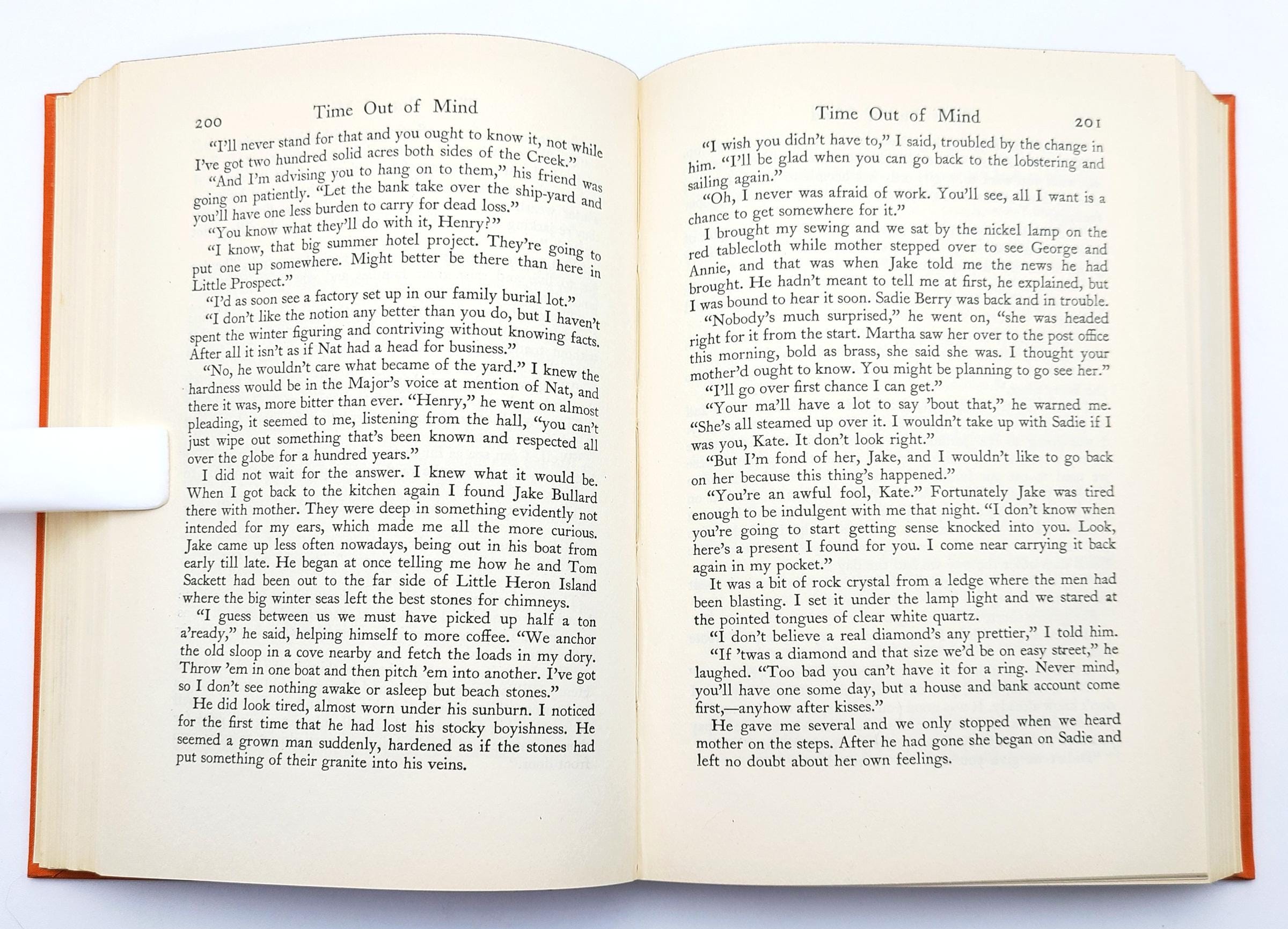 Time Out of Mind won one of the inaugural National Book Awards as the Most Distinguished Novel of 1935. "... a new kind of Maine novel... [the] story is of the coast itself, and begins at the time of the dwindling of the shipping trade, and the coming of the first summer people" (from the front flap).