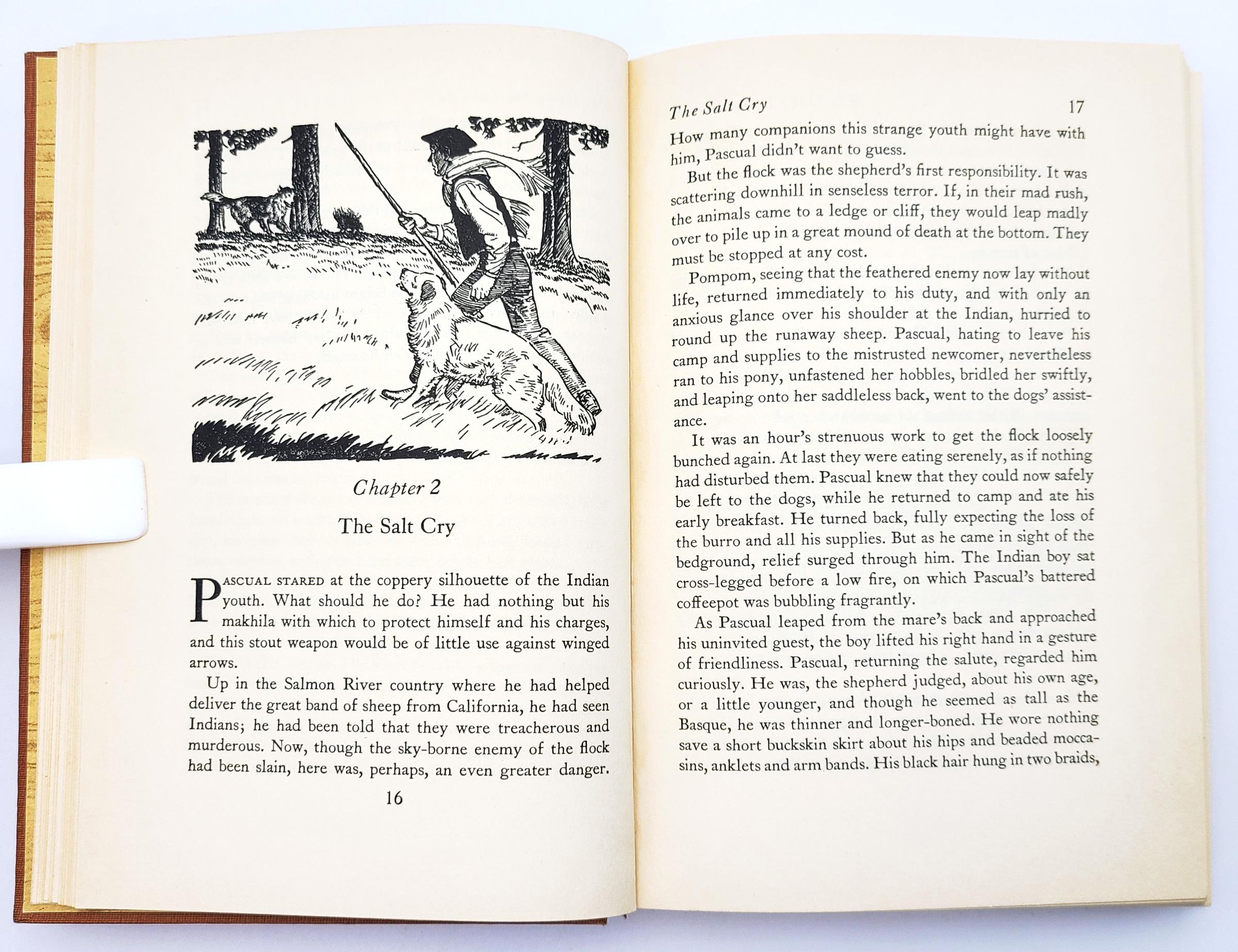 From the front flap: "This is the rousing tale of Pascual, a young Basque lad who fled the tyranny of Europe to breathe the free air of America. But he left the strife of his homeland high in the French Pyrenees only to find a storm of Indian treachery ready to break over the sheep-grazing land of his adopted state, Idaho. A series of raids on Pascual's flock pointed too clearly to Indian thievery. How he set out to solve the riddle despite threats of his harsh foreman, how he coped with ruthless cowboys, bitter rivals of the sheepherders, spice this tale with danger and suspense.
