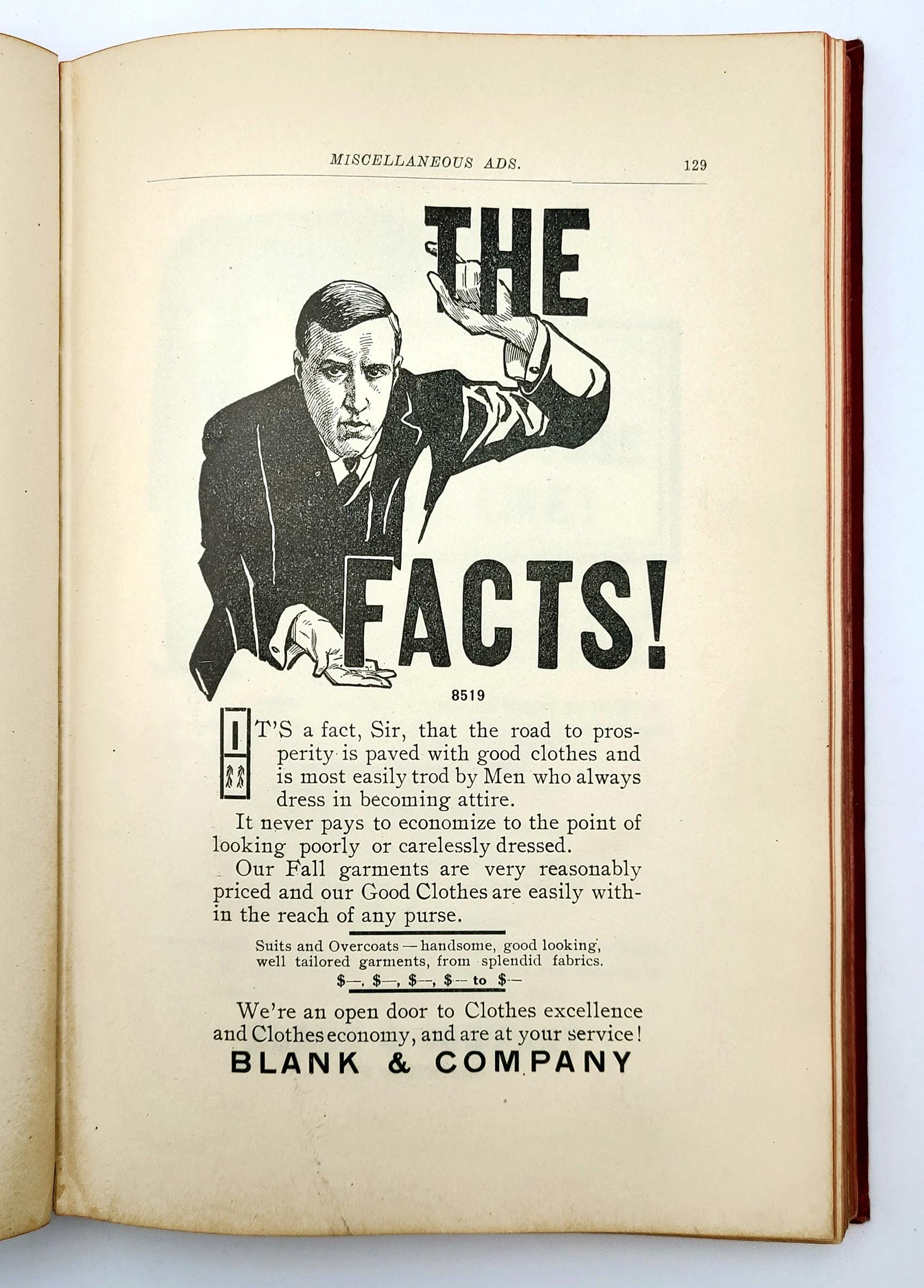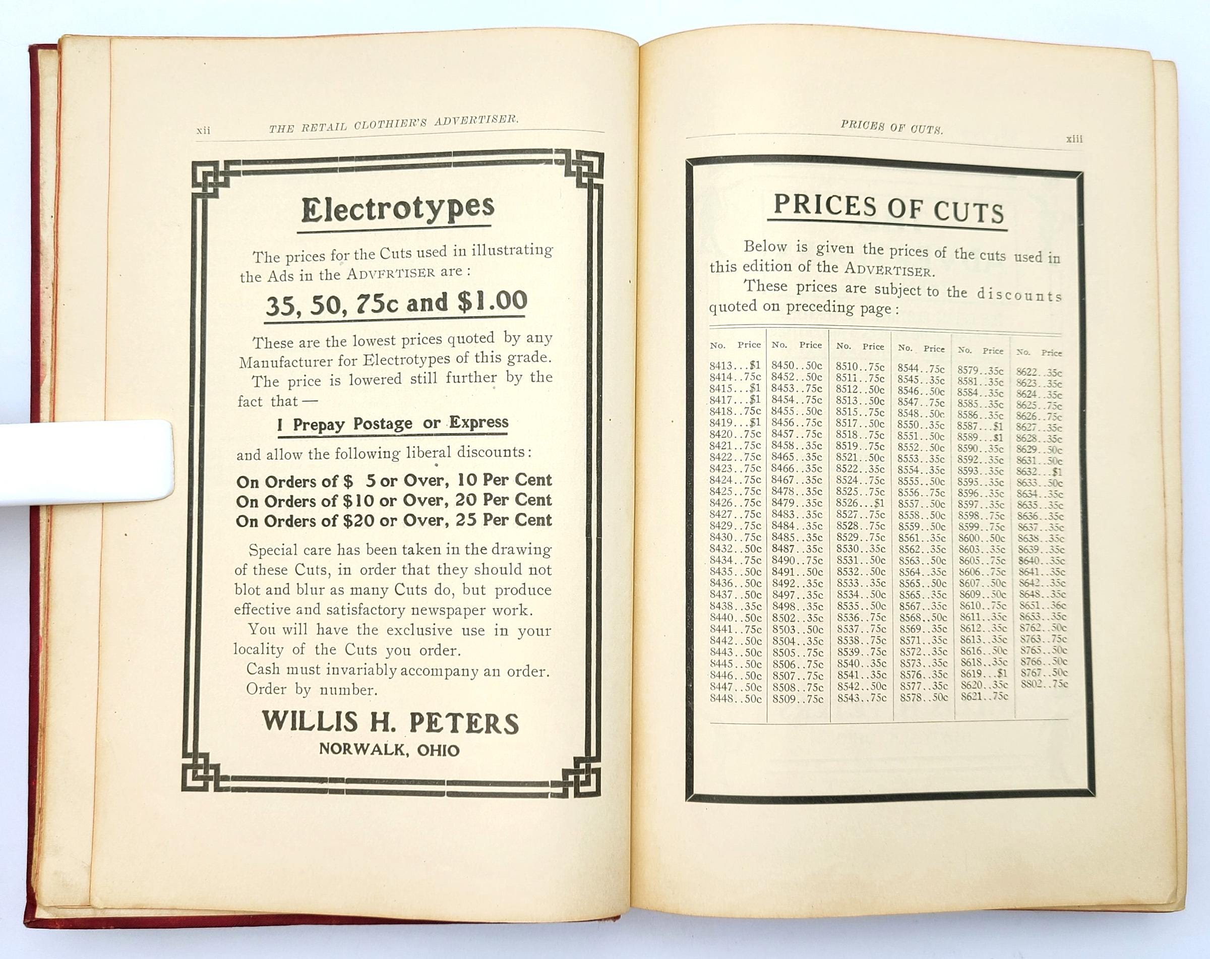 The Retail Clothier's Advertiser was published semi-annually by Willis H. Peters of Norwalk, Ohio, issued on August 15th and March 15th. His ''Ad Service'' provided clothiers ads and advertising cuts (electrotype printing plates), with the Spring and Fall editions providing clothiers with the newest cuts for printed advertising.