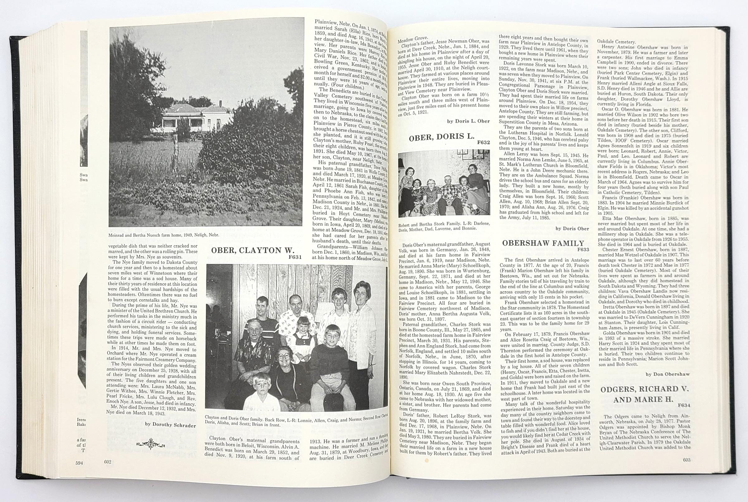 Keywords: genealogy, Carstensen, Norwood, Elgin, Neligh, Tilden, Brunswick, Clearwater, Oakdale, Orchard, Royal,