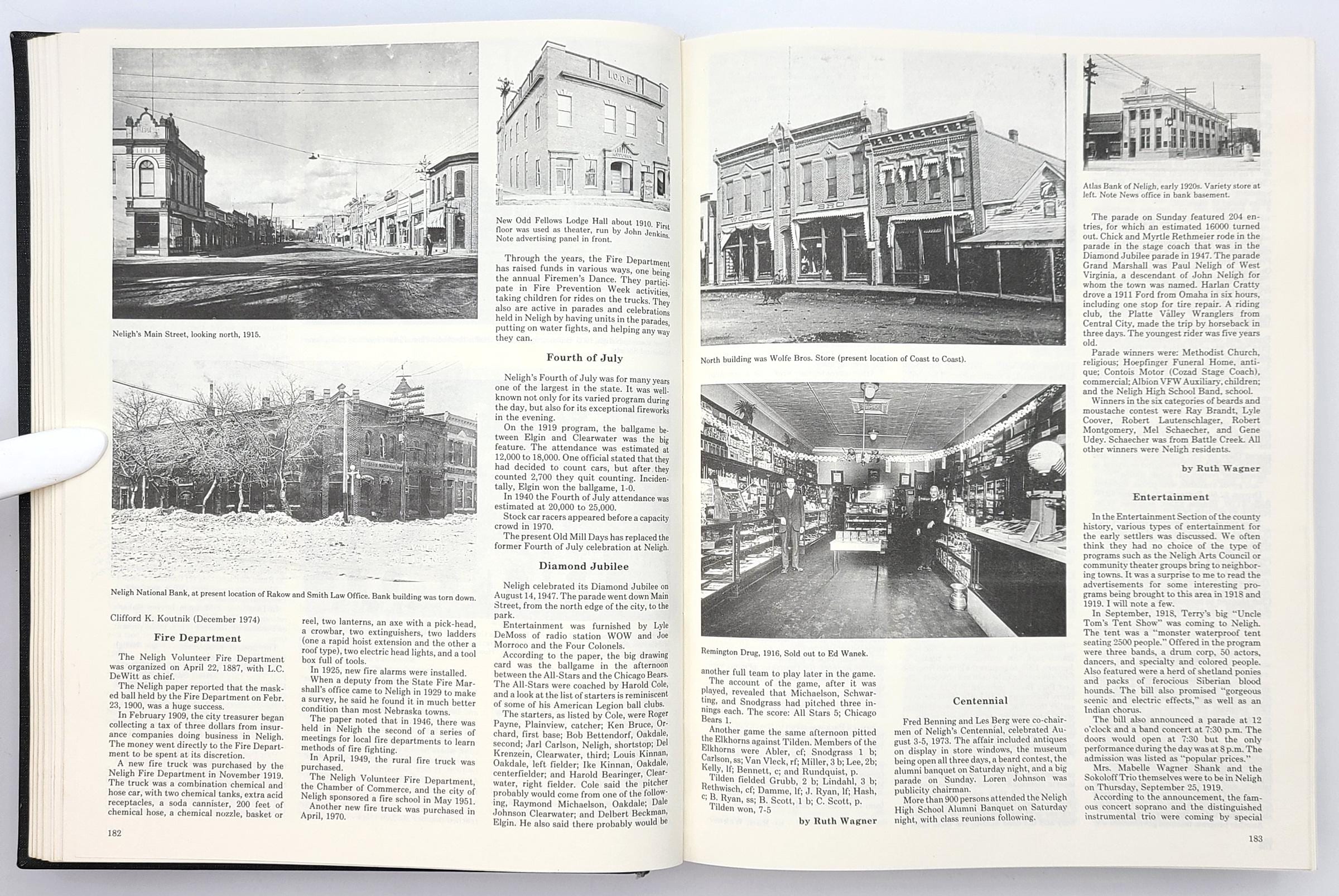 Description: Boards in black cloth, gilt stamped, and with a pictorial of the Antelope County courthouse on the front cover. Upper left corner of front cover bumped; slight wear to spine ends. Additional notations made on a dozen-or-so pages by a member of the Carstensen (Dutch Hollow/Elm Township) & Norwood (Oakdale) families, else internally clean. Illustrated. Index. 831 pages.