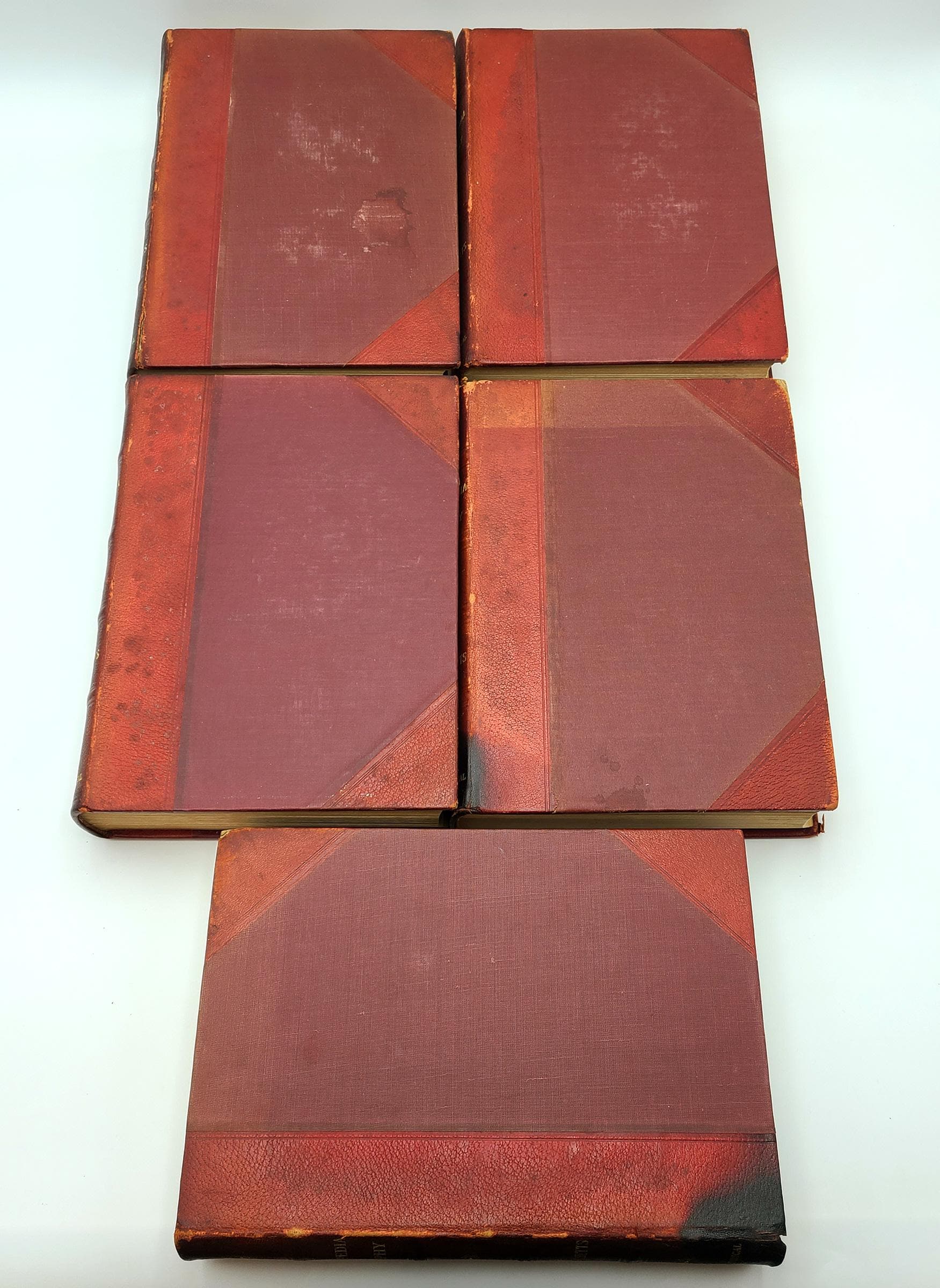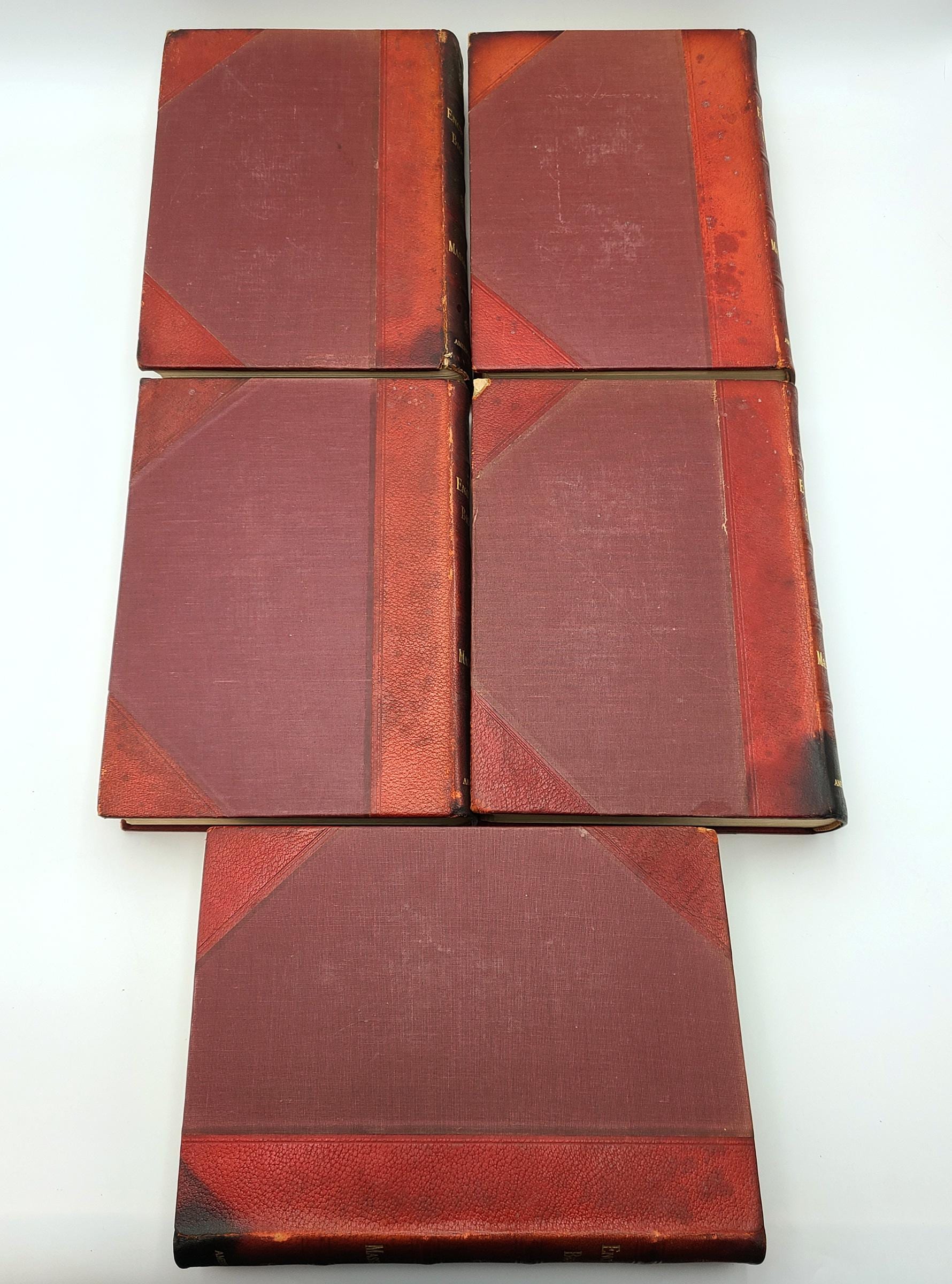 Description: Five volumes. Half red morocco with gilt stamped spines. Top edges gilt. Some wear to edges and corners; modest rubbing and light soiling to sides; foot of spine on two volumes scorched. Bit of cracking to leather at hinges. Marbled endpapers. Interiors are unmarked. Pages are clean with a few minor exceptions. Each volume includes profusion of fine portraits, each with a tissue guard. Thick 4to. Scarce. pp. 426, 425, 465, 404, 397.