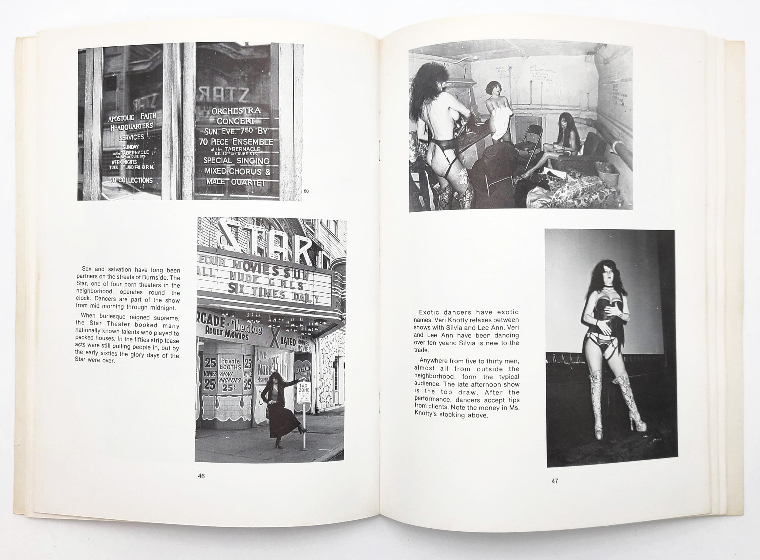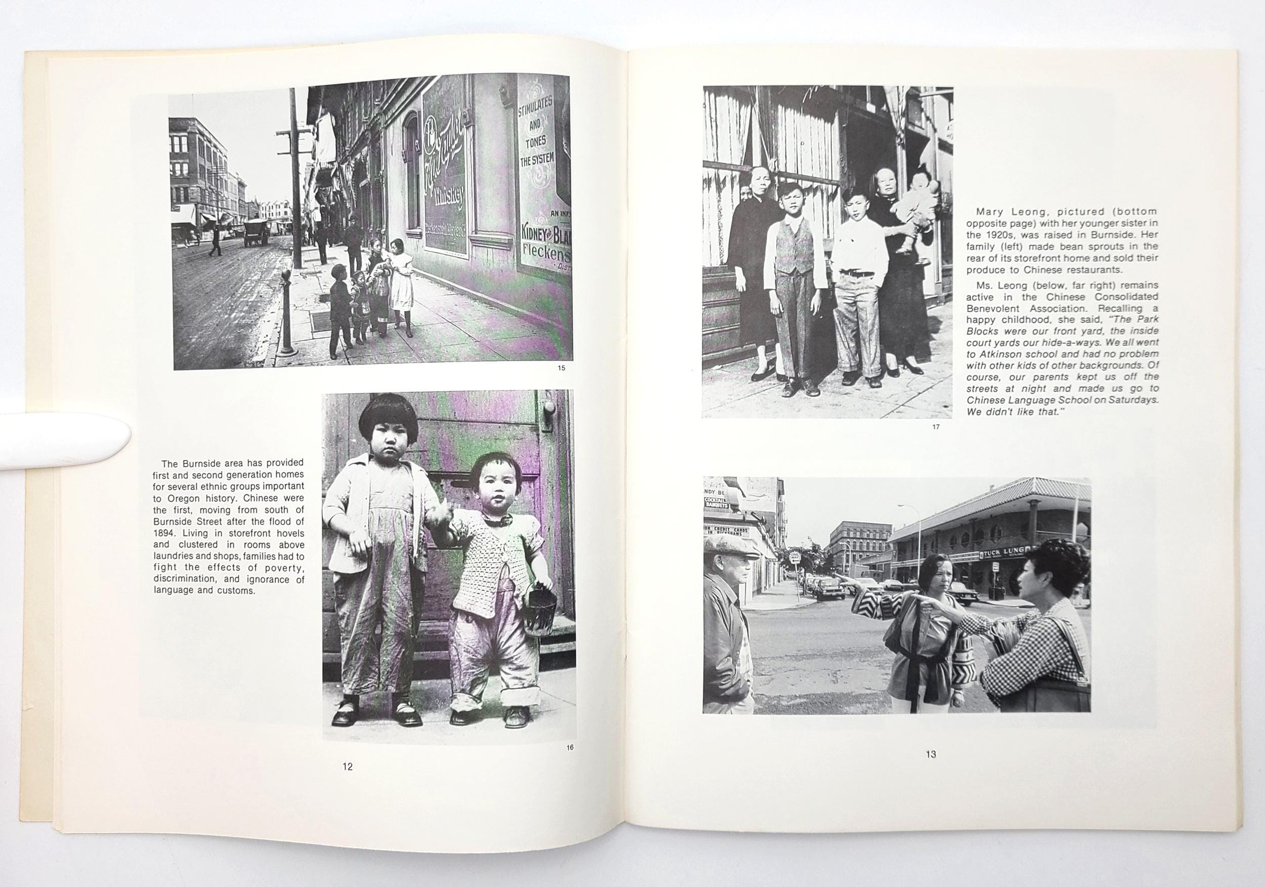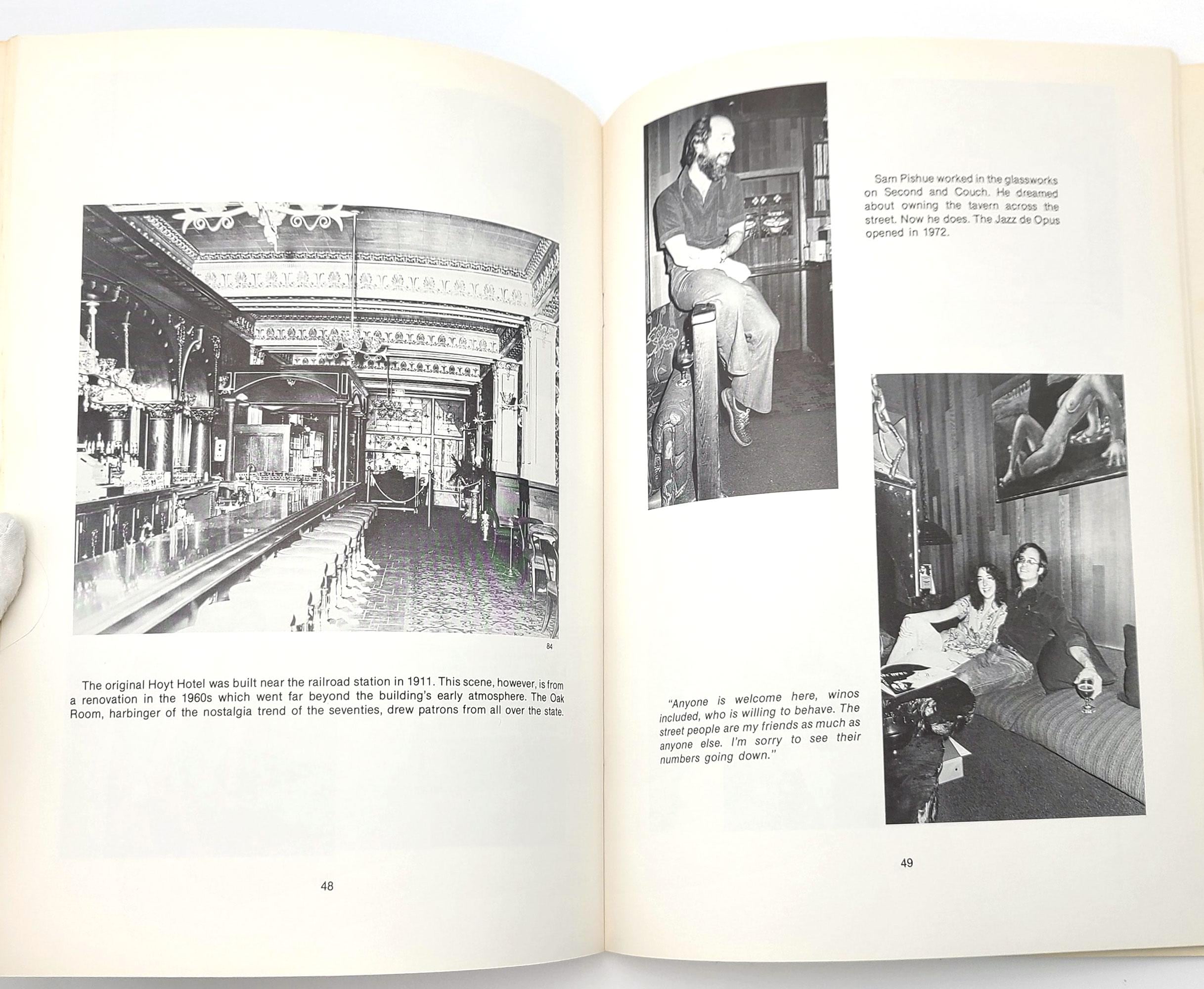 A pictorial history of Burnside, Old Town, and skid row Portland (Oregon), showing its people, communities, businesses, and physical environment, mostly coving the years from about 1910 to 1979. Includes scenes from Erickson's Saloon, Darcelle XV, Jazz de Opus, the Star Theater, the Salvation Army and Apostolic Faith missions, the Naito brothers, Chinatown, gypsies, Native Americans, residential hotels, the unhoused, restaurants, Saturday Market and the funky shops of the 1970s.