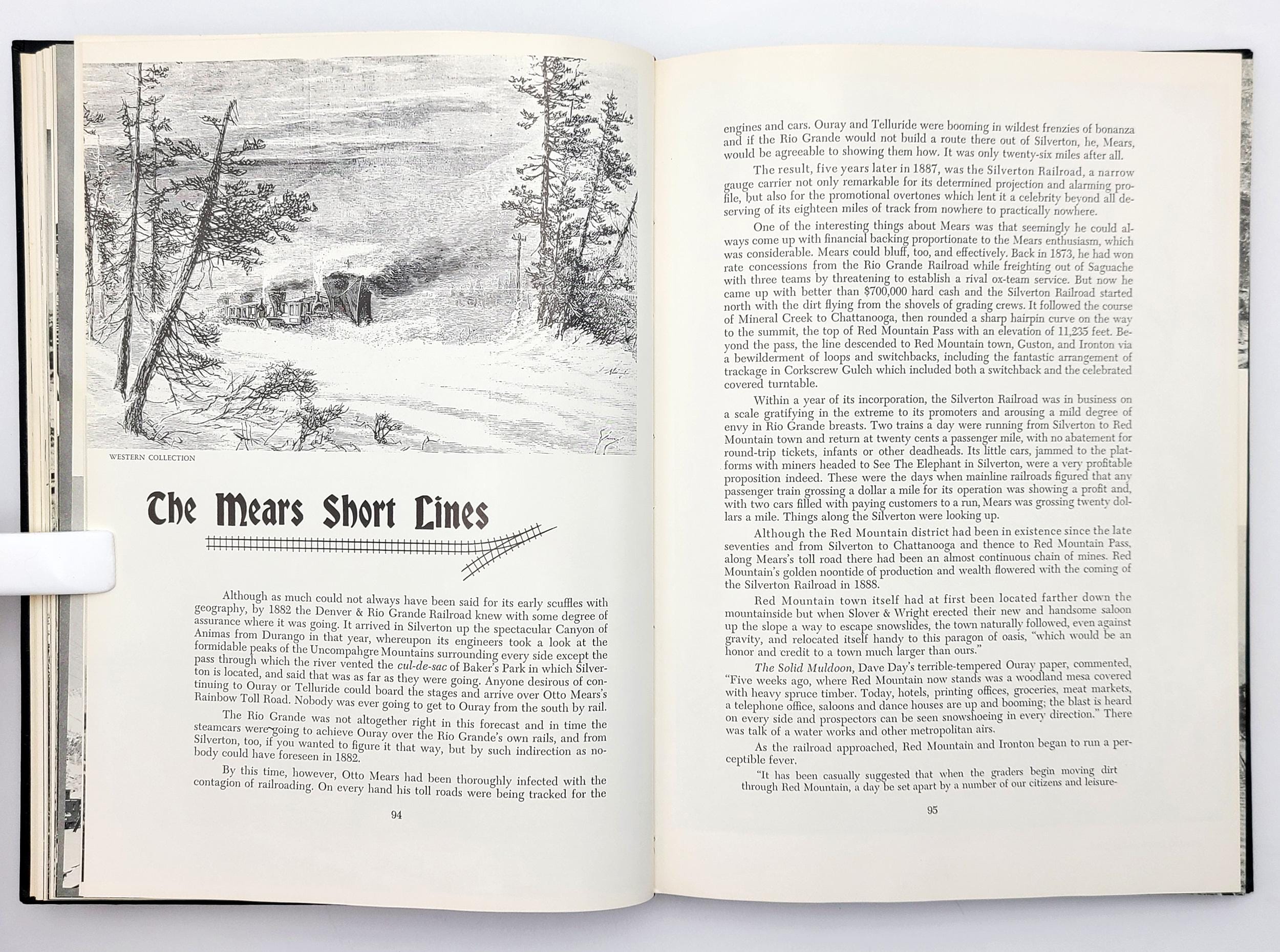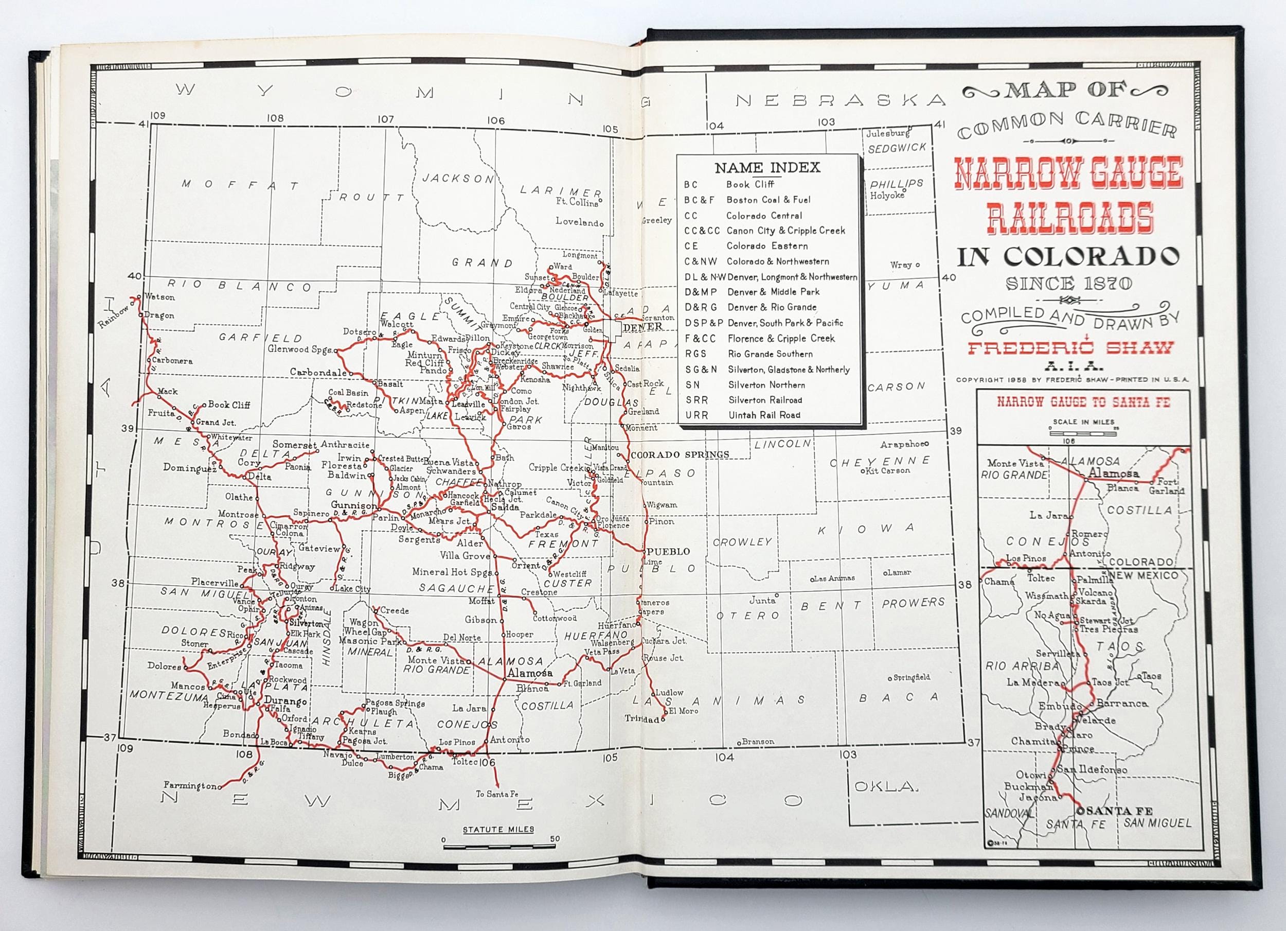 An illustrated presentation of the historic narrow-gauge railroads of the Rockies, featuring 250 photographs, equipment drawings for the model maker, three full color paintings by Howard Fogg, and an endpaper map by Frederic Shaw.