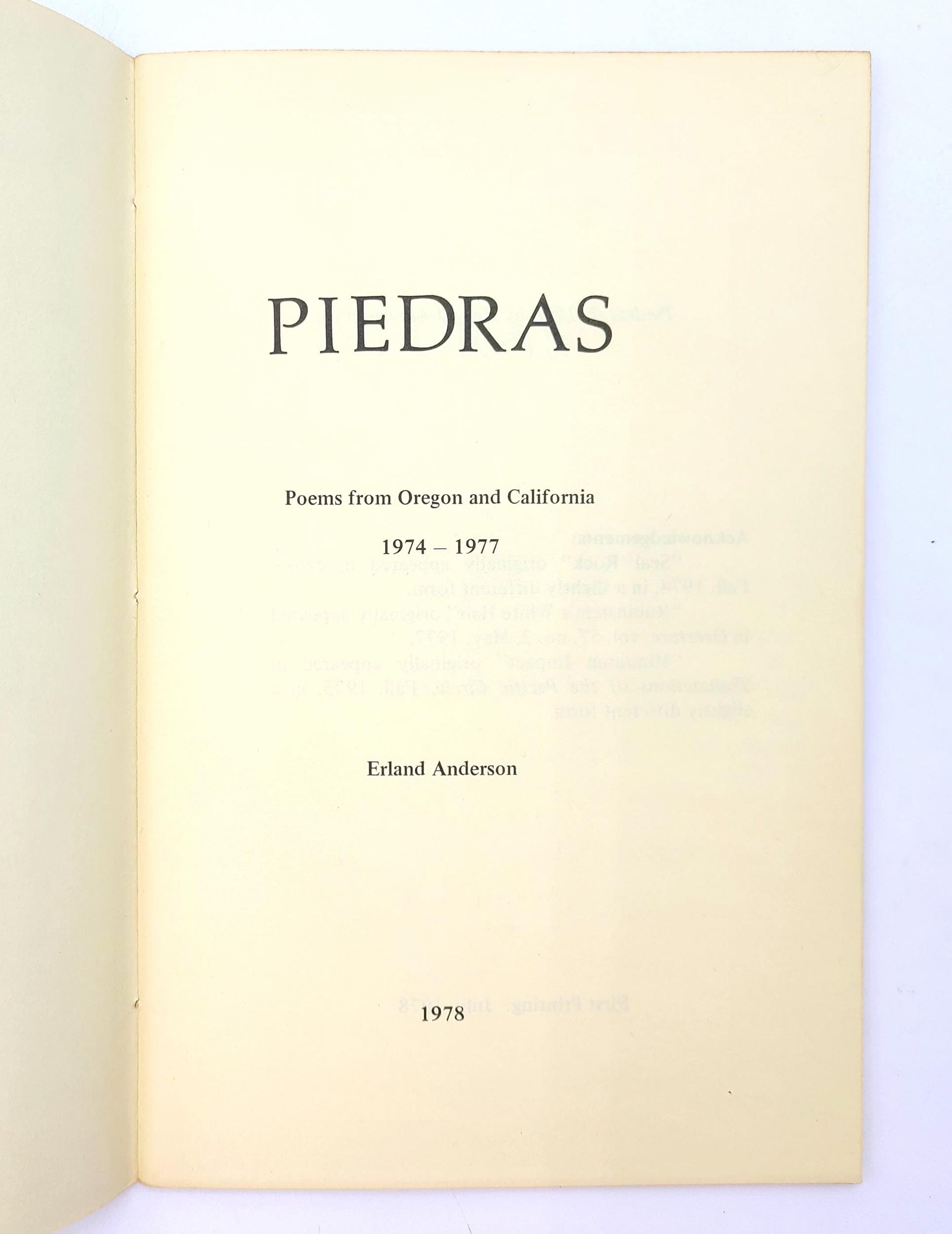 Title: Piedras: Poems from Oregon and California 1974 - 1977