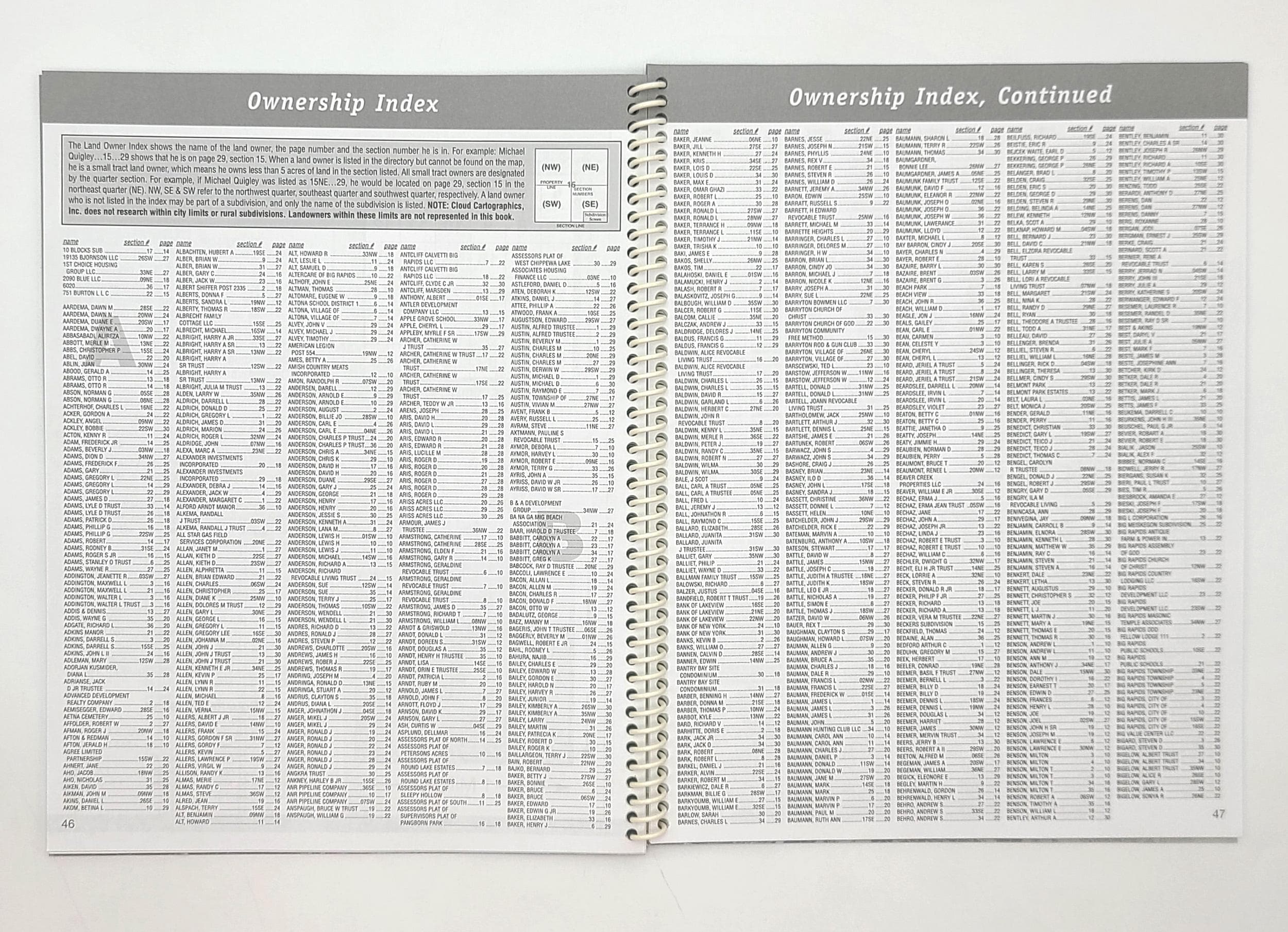 Description: Spiral-wire bound in card covers. Covers lightly rubbed. Clean and unmarked. Color maps. Includes road and property ownership indexes. 72 pages. 11 x 8.5 inches. Two copies located in WorldCat institutions (Library of Congress, Michigan State University).