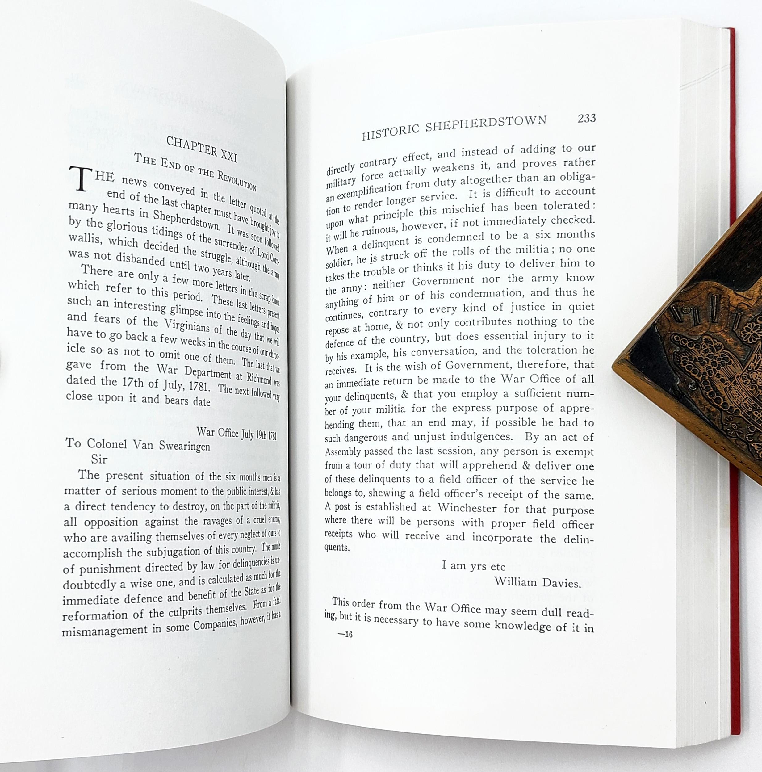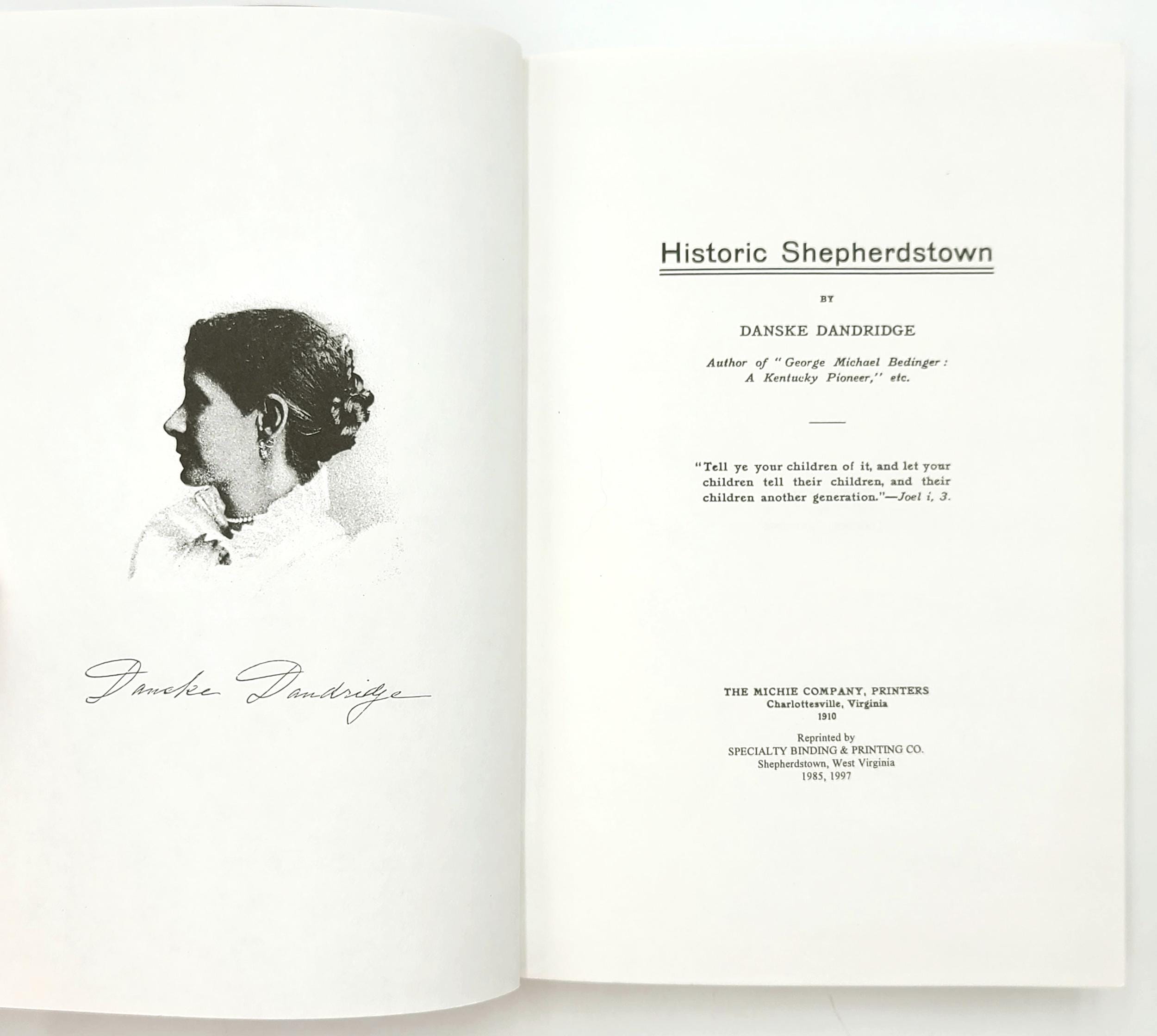 2) Historic Shepherdstown by Danske Dandridge. Originally published in 1910, this is the 1997 reprint. Frontispiece portrait of author. Includes index. vi + 389 pages.